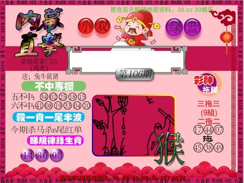 102期九肖虎猴猪羊牛马鸡兔鼠30中